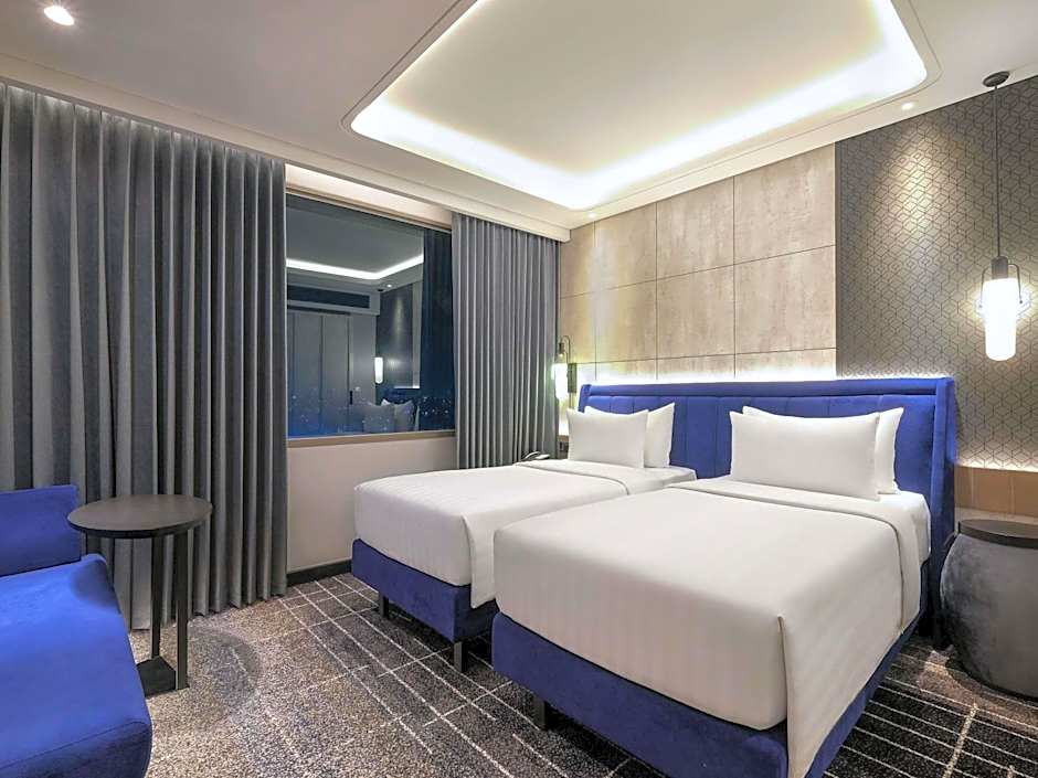 The spacious air-conditioned double room features a flat-screen TV, a tea and coffee maker, a wardrobe, a safe deposit box as well as city views. The unit has 2 beds.